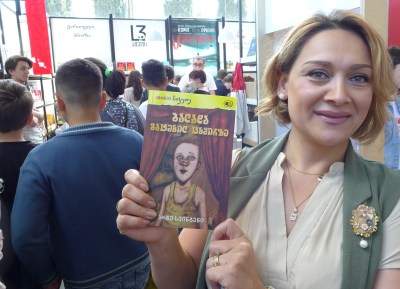 «Sangen om en brukket nese» har nå kommet ut i Georgia. På bildet poserer den georgiske oversetteren Tamar Kvizhinadze med et eksemplar av boken. Dette er den eneste oversettelsen hvor de har brukt det norske omslaget. Romanen er til nå oversatt til 14 språk. Les mer om boka